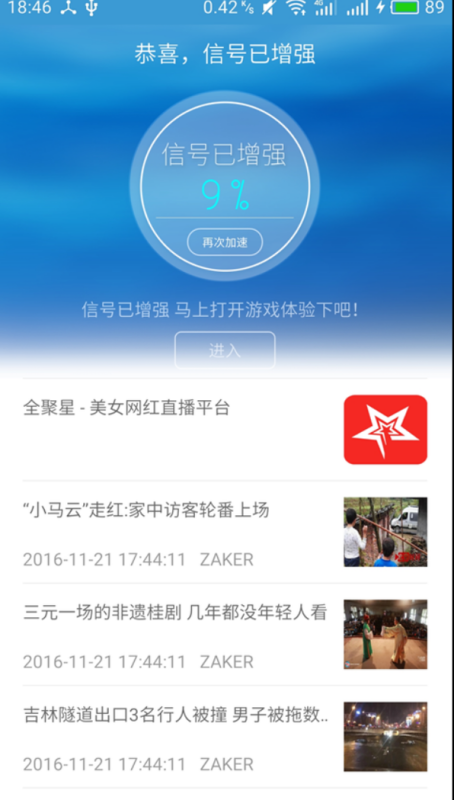 进入WIFI信号增强器的首页过后,你可以看见你的WIFI信号强度。