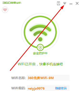 1、打开360免费wifi,点击右下角箭头指向的地方;
