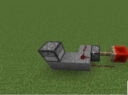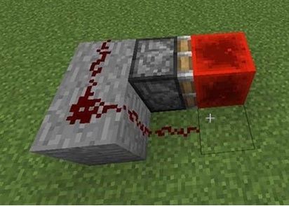 2、然后在红石火把上面放一个方块,中间放一个红石。