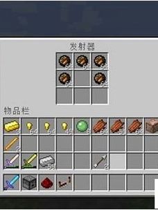 接着往发射器当中存放想要发射的东西,可以是箭矢、烈焰弹。这里我选择的是烈焰弹。因为这东西的视觉效果比弓箭给力;
