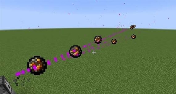 整体效果如下图所示:烈焰弹落地之后还会产生火焰,一段时间之后一条通往地狱的烈焰之路就会出现在大家的面前了。这样凶猛的火力,没有什么能够正面硬刚。就算是火免的怪物也会受到爆炸物理伤害。可以算是相当强力的热火力输出。这里体型大家,如果放入TNT的话,并不能发射的很远,容易炸到自己。