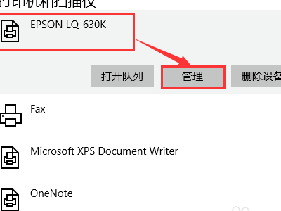 3、然后在打印机队列中,找到自己的EPSON LQ-630K打印机,点击打开管理界面。