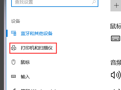 2、之后在调出的对话框内选在“打印机和扫描仪”。