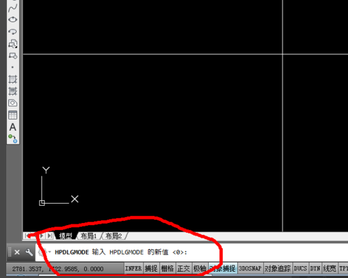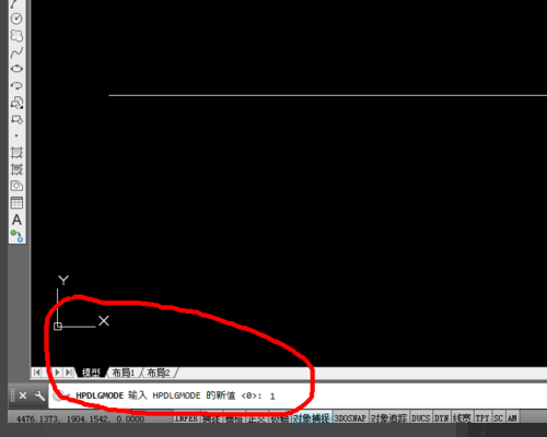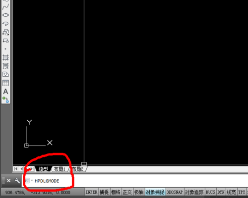 2、进入CAD2014的使用界面后,在左下角的命令栏里输入命令:HPDLGMODE。