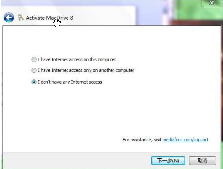 (6)重启后我们需要激活Macdrive,跳出下面的窗口,我们选择第二项,使用激活码激活: