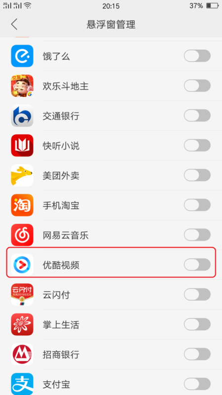 第四步,找到要设置悬浮窗的应用,将其开关开启即可。