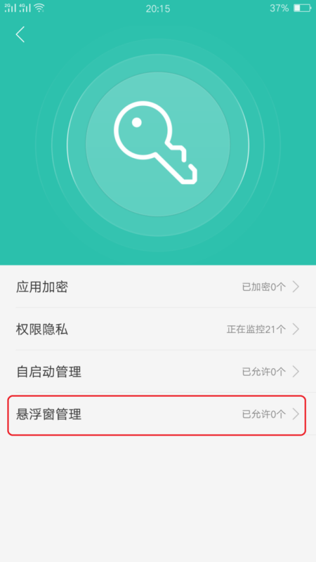 第三步,找到”悬浮窗管理“一项并点击进入,如图。