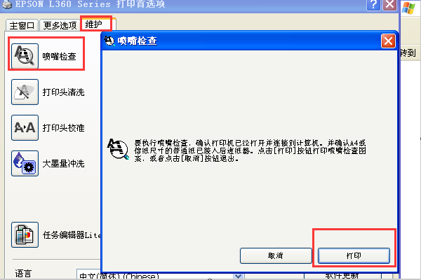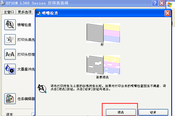 不同型号的爱普生打印机清洗方式基本相同,以爱普生L360打印机为例,清洗喷嘴的方法如下: