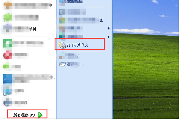 1、点击桌面上左下角的开始按钮,找到所有程序里面,找到打印机与传真。