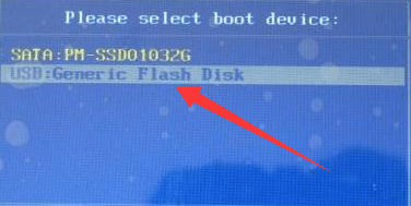 6、U盘插入0xc000007b蓝屏电脑,按下开机键,立即敲击启动热键,出现boot界面,选择USB选项或者U盘品牌选项,回车