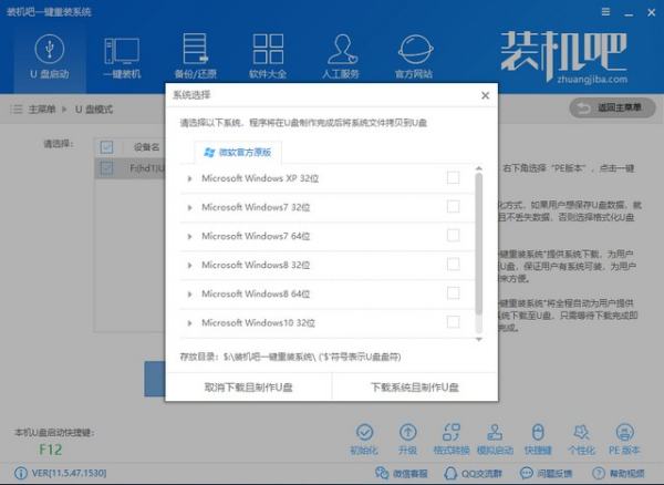 1、找一台可以正常上网的电脑,下载装机吧一键重装系统,http://www.zhuangjiba.com/