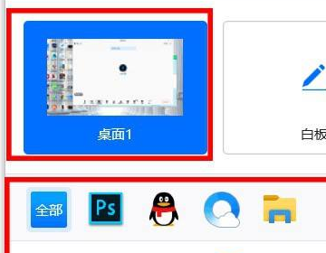 3、选择需要共享的区域,第一栏时屏幕桌面,第二栏时缩小在任务栏的程序,选择完毕点击确认共享。