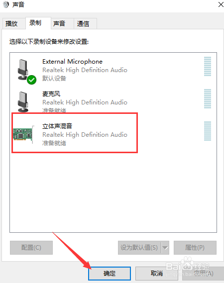 第五:选择录制里面的立体声混音点击确定。