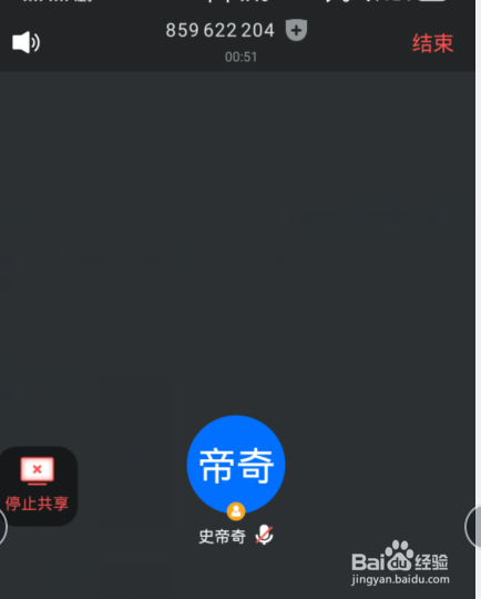 5、不需要共享时点击右上角的结束共享就可以退出屏幕共享了。