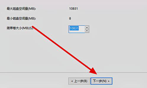第九步,弹出了新建简单卷向导,根据向导提示操作就可以了,点击进入下一步