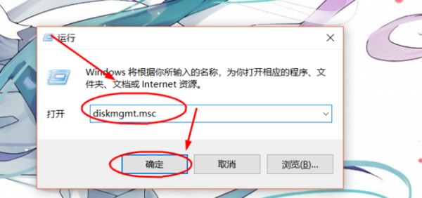 2、然后,在其中的输入框中输入“diskmgmt.msc”,再点击“确定”。