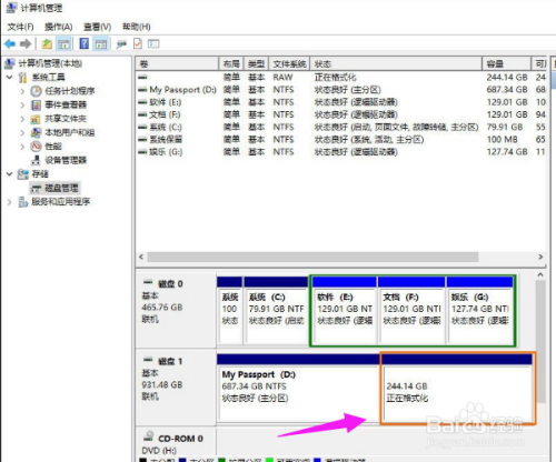 4、经过重新分区后,我们就可以将不同的数据分门别类的放在对应的分区当中,就不必在一个分区里的N多目录下找寻文件了,是不是方便很多呢。