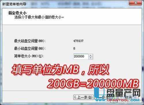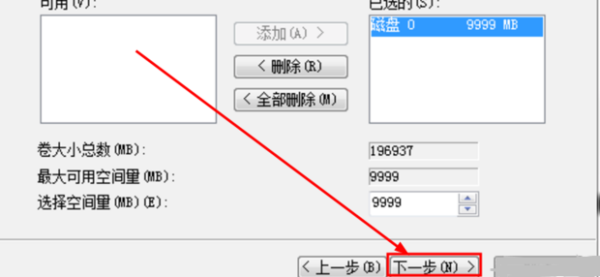2、在填写完容量后,单击下一步直到出现下图为止。