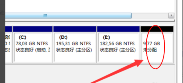 第七步,现在就可以看到刚才压缩的空间就被分离出来了,但是现在这些空间是未分配的,就是如果在我的电脑里面是看不到的,下面就来给它分配一个盘符