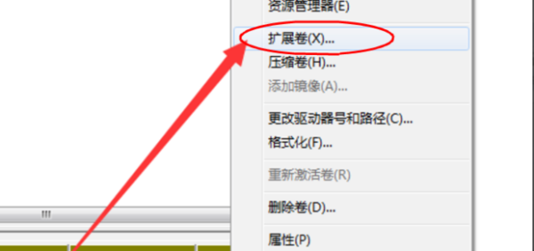 6、然后,在要合并的另一个磁盘上单击鼠标右键,在弹出的选项框中点击“扩展卷”,如图所示。