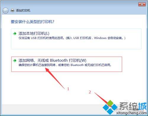 4、添加网络、无线或BLuetooth打印机(W)——下一步;