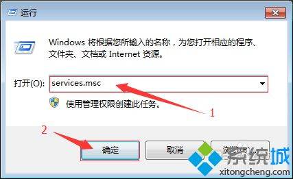 1、在需要连接网络打印机的电脑上,单击开始——运行——输入services.msc——确定;