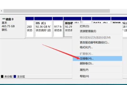 之后选择要分区的磁盘,右键单击,然后选择“压缩卷”。