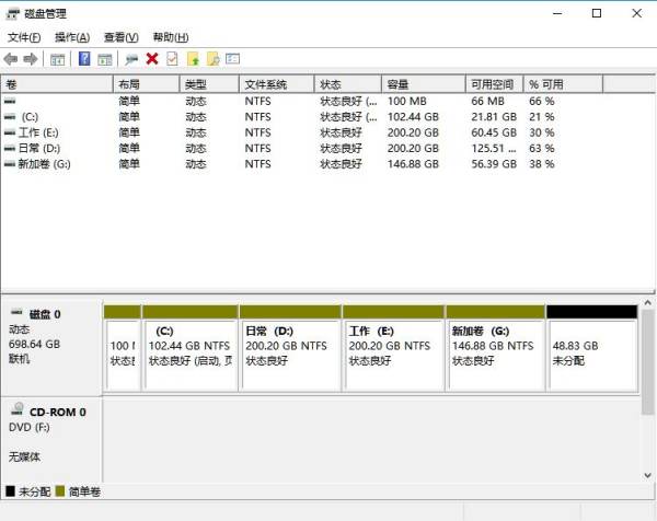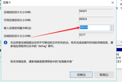 注意,如果是系统盘的话,应该留下至少50GB的容量。确定容量后,点击“压缩”,完成后会看到分区列表中增加了一块未分区的自由空间。