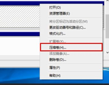 步骤2. 在分区列表中,右键点击希望重新分区的部分,选择“压缩卷”,系统经过分析后会给出可用压缩容量。