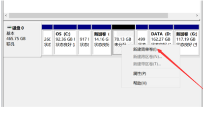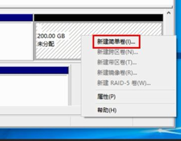 选择未分配的磁盘,右键单击,然后选择新建简单卷。