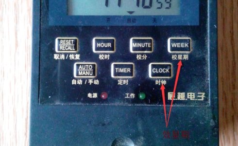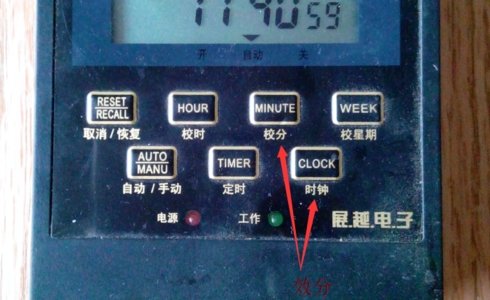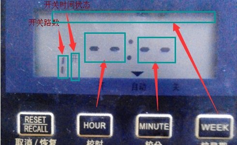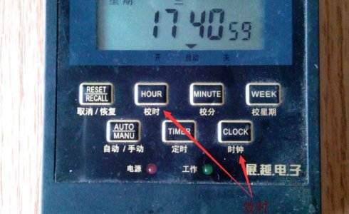 3、时钟时间调整,找到时钟,校时,校分,校星期按钮,设置时间时需要共用一个时钟按钮,也就是说比如校时,需要长按时钟键,同时按校时键才能校时,个别时控开关可能不用同时按。