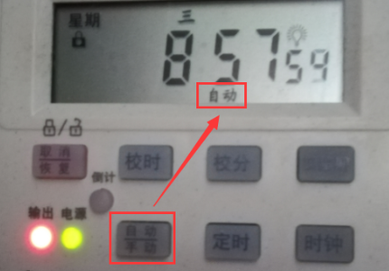 5、最后一步,我们需要按“自动/手动”按钮,然后将其调至“自动”,就可以定时开关机了。