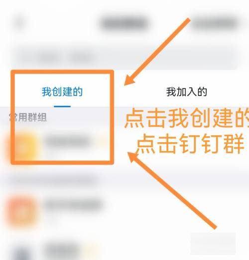 在我的群组页面点击我创建的,再点击进入需要禁言的钉钉群。