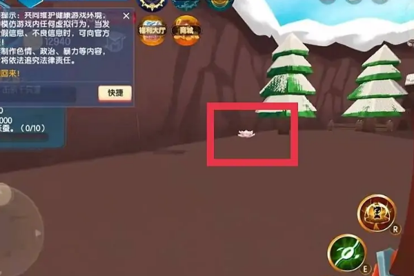 2、其次进入极寒之地一直往前走走到第一个拐弯处往左拐,左拐之后就一直往前走,在树旁边有一朵像荷花一样的东西。