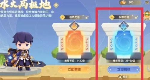 1、玩家想要获得冰山雪莲首先需要进入冰火两极地中的极寒之地。