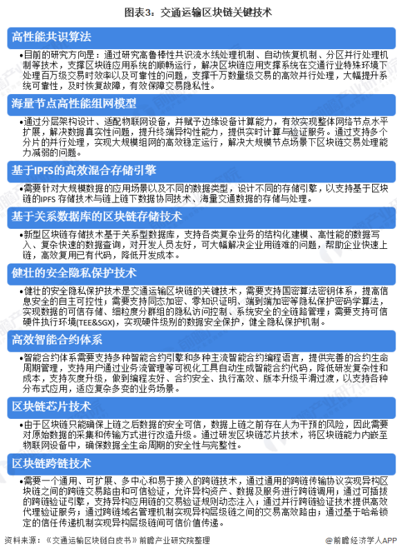 交通运输区块链的关键技术主要包括高性能高鲁棒共识算法、海量节点组网、基于IPFS 的高效混合存储引擎、基于关系数据库的底层区块链存储技术、健壮的安全隐私保护技术、高效智能合约体系、区块链芯片技术、区块链跨链技术等。
