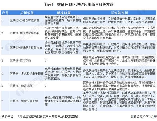根据《交通运输区块链白皮书》,目前我国交通运输区块链技术主要应用在公路自有物流收费、物流供应链金融、交通综合行政执法、信用交通、多式联运电子提单、物流追溯和智慧交通工地等7大应用场景。