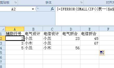 =IFERROR(SMALL(IF((表一!$A$2:$A$100="小兰")+(表一!$B$2:$B$100="小兰"),ROW(表一!$A$2:$A$100)),ROW(1:1)),""),数组公式,即同时按Shift+Ctrl+Enter结束公式编辑,会自动生成一对{},下拉;