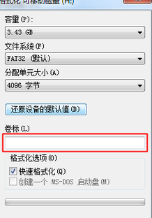 4、下面就是卷标了,卷标是指你的U盘在插入电脑后在电脑上显示的名字
