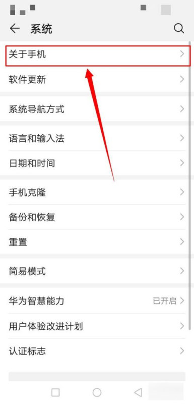 3、在系统中找到“关于手机”并打开。