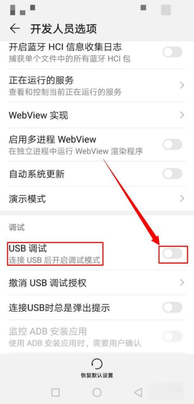 usb调试模式在如下: