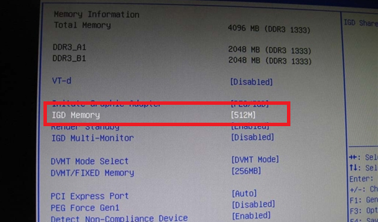 1、开机的时候按DEL进入BIOS,集显调百节位置在 Chipset - North Bridge子项里面。