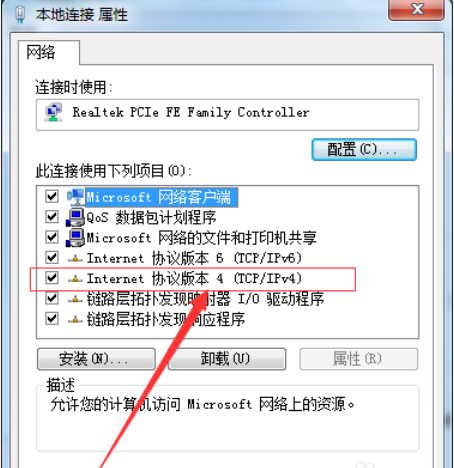 3.然后在项目列表中找到“Internet 协议版本4(TCP/IPv4)”。