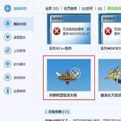 4、接下来在腾讯专区内,选择点击英雄联盟登录失败。