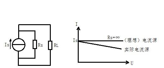理想电流源的输出电流与其两端电压方向、大小无关。即使其两端电压为无穷大,其输出电流仍按原来规律变化(为常数或为时间的函数)。若理想电压源iS(t)=0,则它相当于开路。