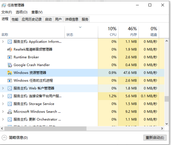 找到并选中Windows资源管理器,点击重新启动。如果操作中无法调出任务管理器、无法顺利结束任务或结束任务后电脑仍卡死,则按下电源键使电脑强制关机。重启后看什么状态,如果还是一样,或者不顺畅。那就建议重装系统。我们可以尝试系统之家装机大师,一键电脑重装。