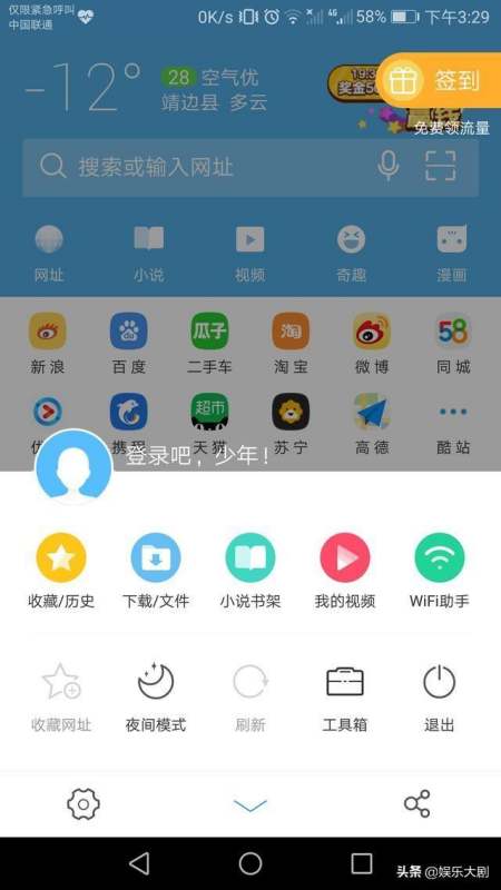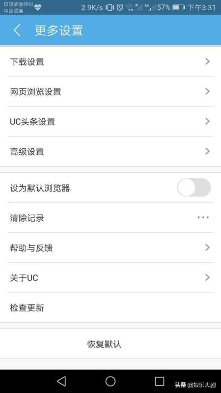 1:打开手机浏览器(以UC浏览器为例),打开设置页面。