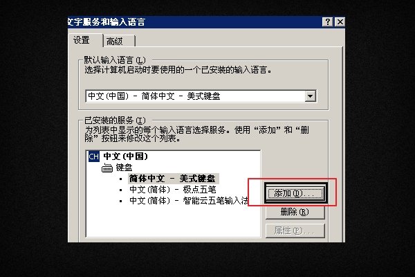 3、在打开的“文字服务和输入语言”框中,选择右侧的“添加”选项。