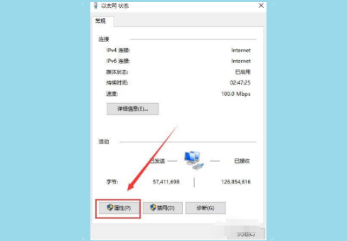 然后鼠标双击网络图标,进入网络状态窗口,点击属性按钮。