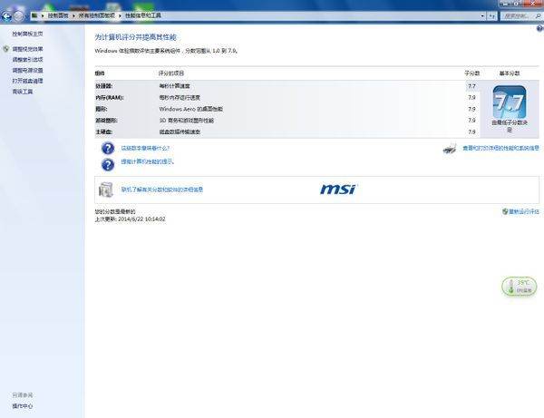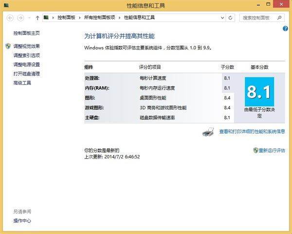 6、还可以通过win7、win8的体验得分稍微了解一下磁盘性能。